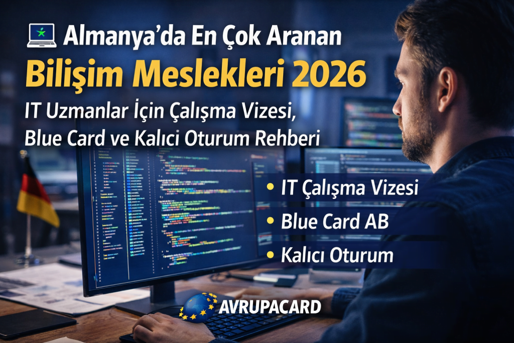 💻 Almanya’da En Çok Aranan Meslekler 2026 – Bilişim (IT) IT Uzmanları İçin Çalışma Vizesi, Blue Card, Fachkraft ve Kalıcı Oturum Rehberi Almanya; dijitalleşme, yapay zekâ, siber güvenlik ve sanayi 4.0 yatırımları nedeniyle bilişim (IT) alanında ciddi ve sürekli bir nitelikli iş gücü açığı yaşamaktadır. Bu nedenle Alman Göç Yasası (Aufenthaltsgesetz) kapsamında, IT uzmanları için…